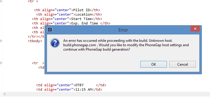 I'm just trying to build a mobile app in CF 11 & builder 3 ... i've setup phone gap host settings & trying to generate app files but its getting me phone gap UNKNOWN HOST error