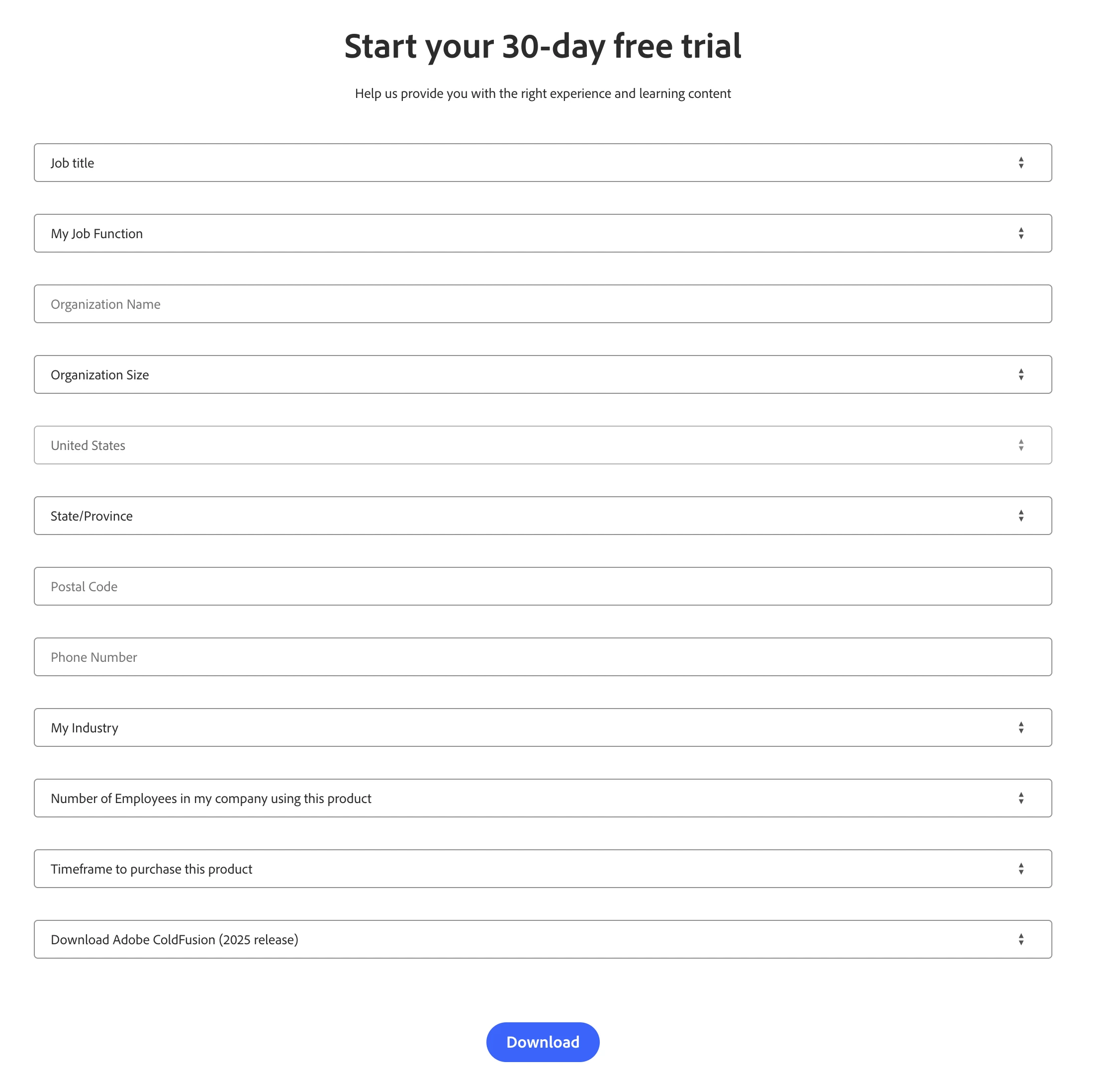 I have been trying to download 3023 and 2025 versions of ColdFusion, but have been unable to. The download link takes me to a trial form: https://www.adobe.com/products/coldfusion/download-trial/try.html#