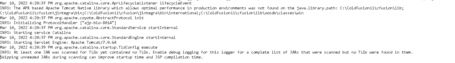 ColdFusion11 - can't start. Very few log details