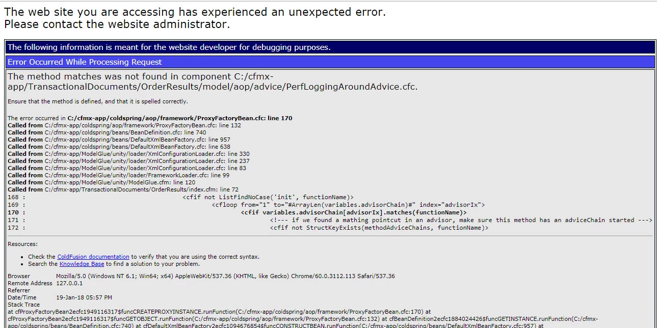 Recently, we have upgraded ColdFusion 2016 version from ColdFusion 8 version. We have been facing issue with the application which was implemented in ModelGlue 2.0 and ColdSpring framework. As per my observation, ModelGlue framework is not loading due to this application is throwing method not found error.