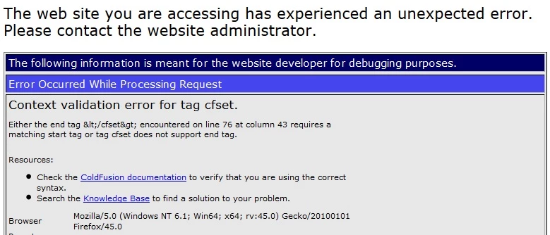 Context validation error for tag cfset.
