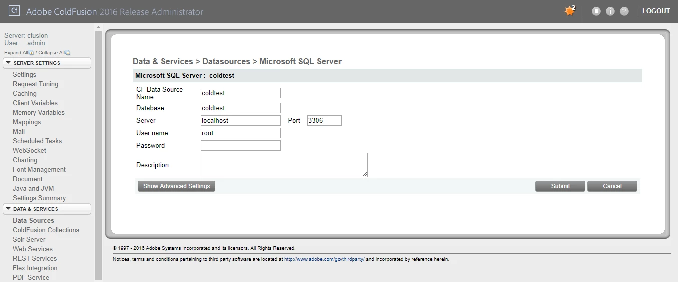I created a database on xampp called "coldtest" and I would like to work on this database with Cold Fusion.
