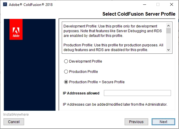 Hi all. I'm a new employee at a company whose developers installed CF2018 awhile ago, and I'm trying to install my development CF2018 to match theirs. Unfortunately, they don't remember whether they installed using the Development Profile, the Production Profile, or the Production Profile + Secure Profile. Since I'm seeing notes on the Web that this option cannot be changed once installation is complete, I want to determine what they originally selected. Is there a setting in their cf administrators (or elsewhere) that they could check to find out?
