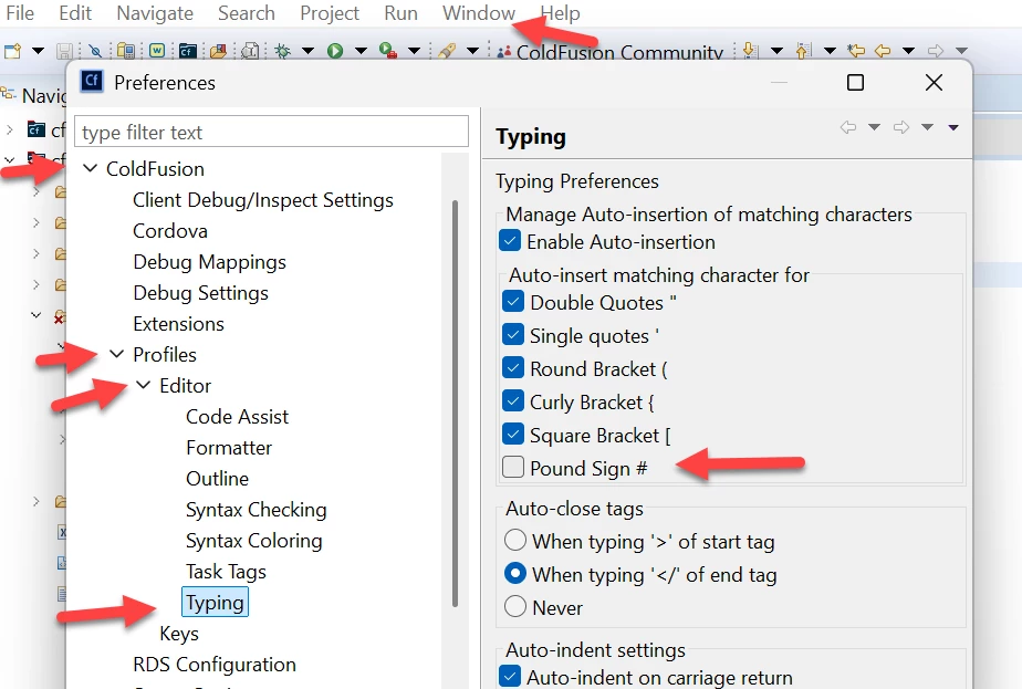 Preferences>ColdFusion>Profiles>Editor>Typing