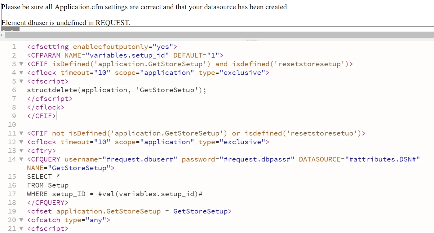 Element server is undefined in GETSETUP