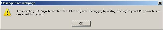 I am using a time out popup to ask the users whether they would like to continue in the site. So this time out popup is shown using ajax. But sometimes it is showing an error alert like this. Here the reason is shown as Unknown. And by Ajax I am calling a function in the logoutcontroller.cfc.