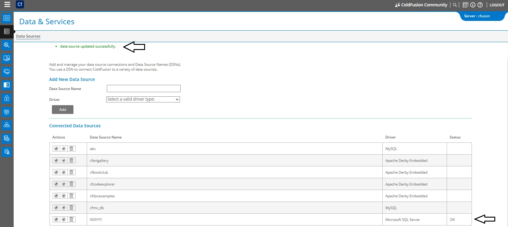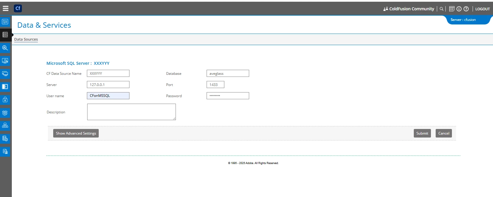 On ColdFusion 2016 local developer edition running SQL Server 2022 I cannot set up my datasource and getting the following error: "Connection verification failed for data source: XXXYYY