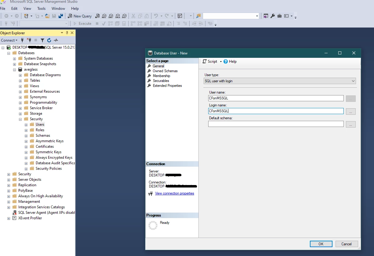 java.sql.SQLNonTransientConnectionException: [Macromedia][SQLServer JDBC Driver][SQLServer]Cannot open database "aveglass" requested by the login. The login failed.