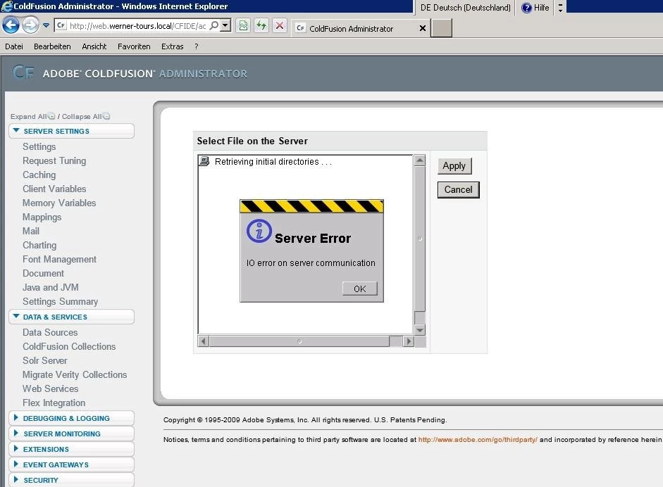 F1 !!!!! Need HELP asap. I get a server error by trying installing the hotfix APSB13-13 for CF 9.0. I try to install the hotfix under java-version 7.21, 7.11, 6.10, 6.14 and 6.16. What can I do?