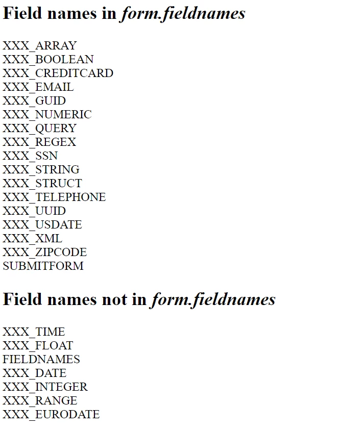 Form fieldnames missing element