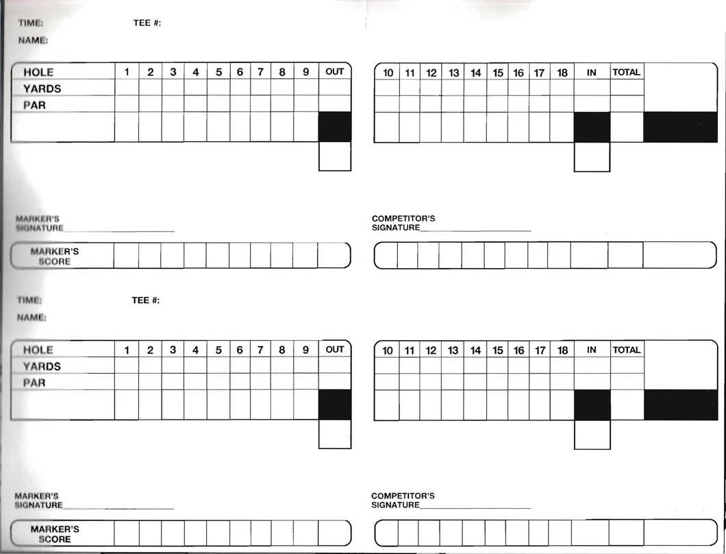 I need to come up with a way to generate a word doc (or in reality any way that can be printed), to fill in the below pictured score cards with Player Name, Ttime, Start Hole, Yardage and Par values for each player for an event. The score cards, are pre-prented stock as shown below. I have all the data available.