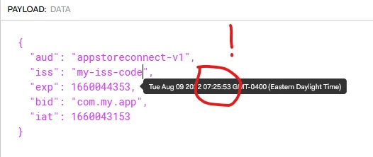 <!--- iss value: issuer ID from the Keys page in App Store Connect --->