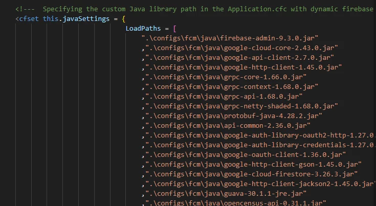 I have downloaded these many jdk files included in the application.cfc to fetch oauth token and send Firebase messaging push notifications.