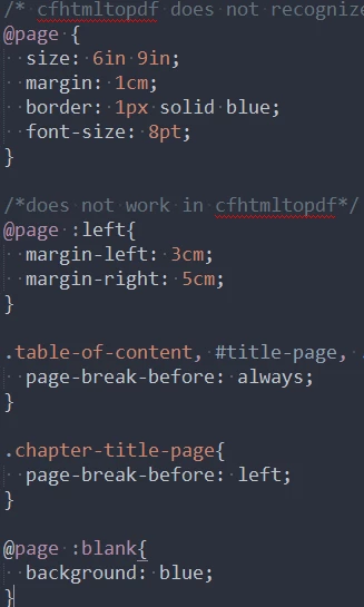 How can I get 100% control over the style of my PDF using coldfusion's cfhtmltopdf and css. I would like to know if CSS paged media or print css works with cfhtmltopdf.