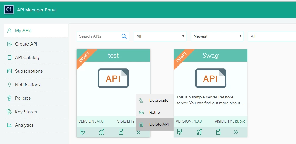 How to delete an API from the CF API Manager Catalog?