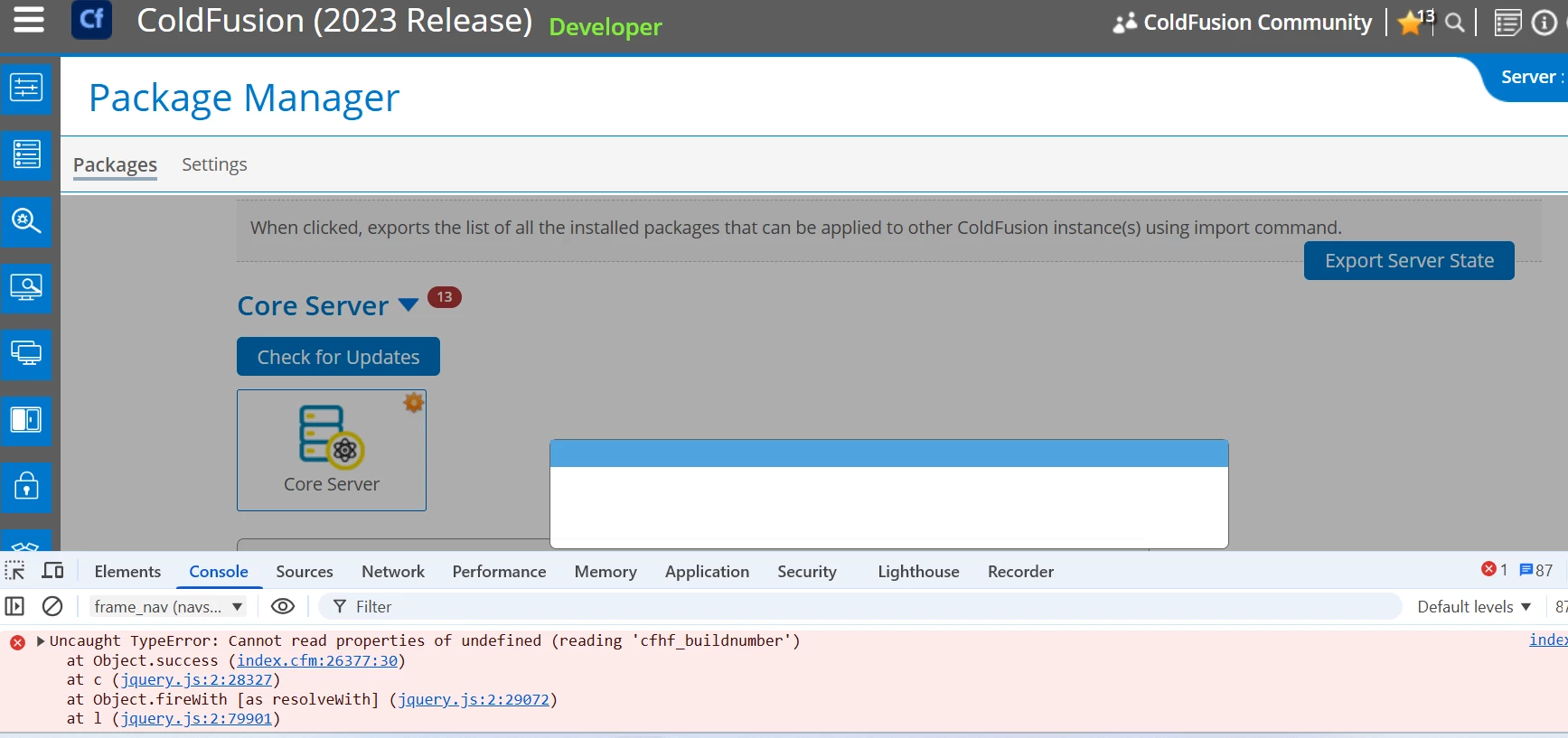 Uncaught TypeError: Cannot read properties of undefined (reading 'cfhf_buildnumber')