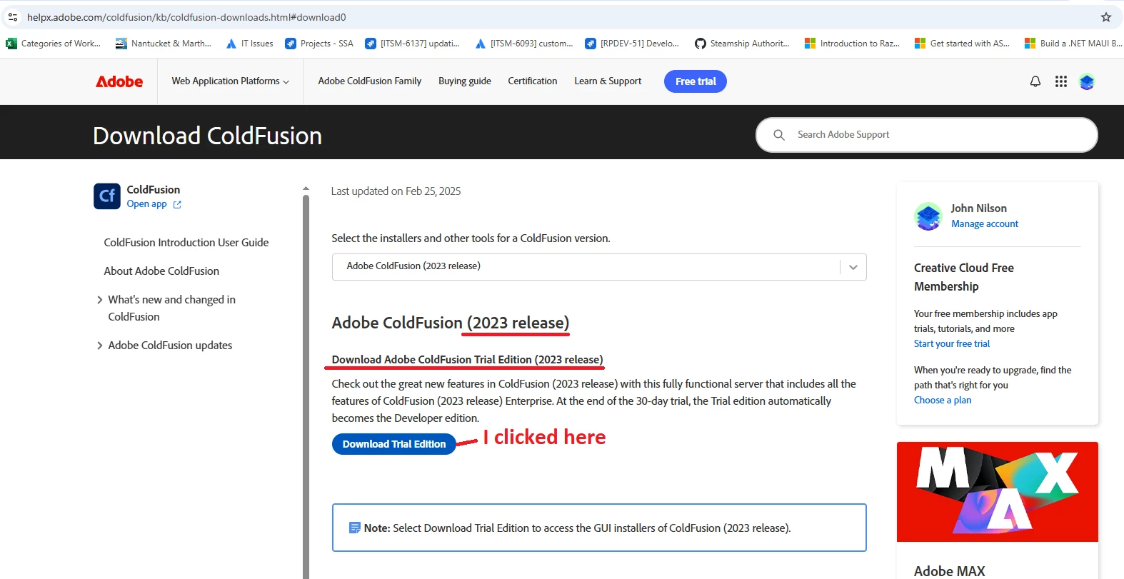 Jjohnn82828435InspiringForum|Forum|7 months agoJune 30, 2025QuestionI can't find the Cold Fusion 2023 trial download linkForum|Forum|7 months agoJune 30, 20252 replies195 views