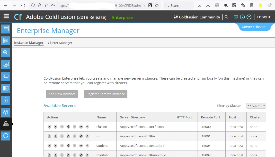 However after doing the same in Coldfusion 2023 the stop and restart actions aren't avaible
