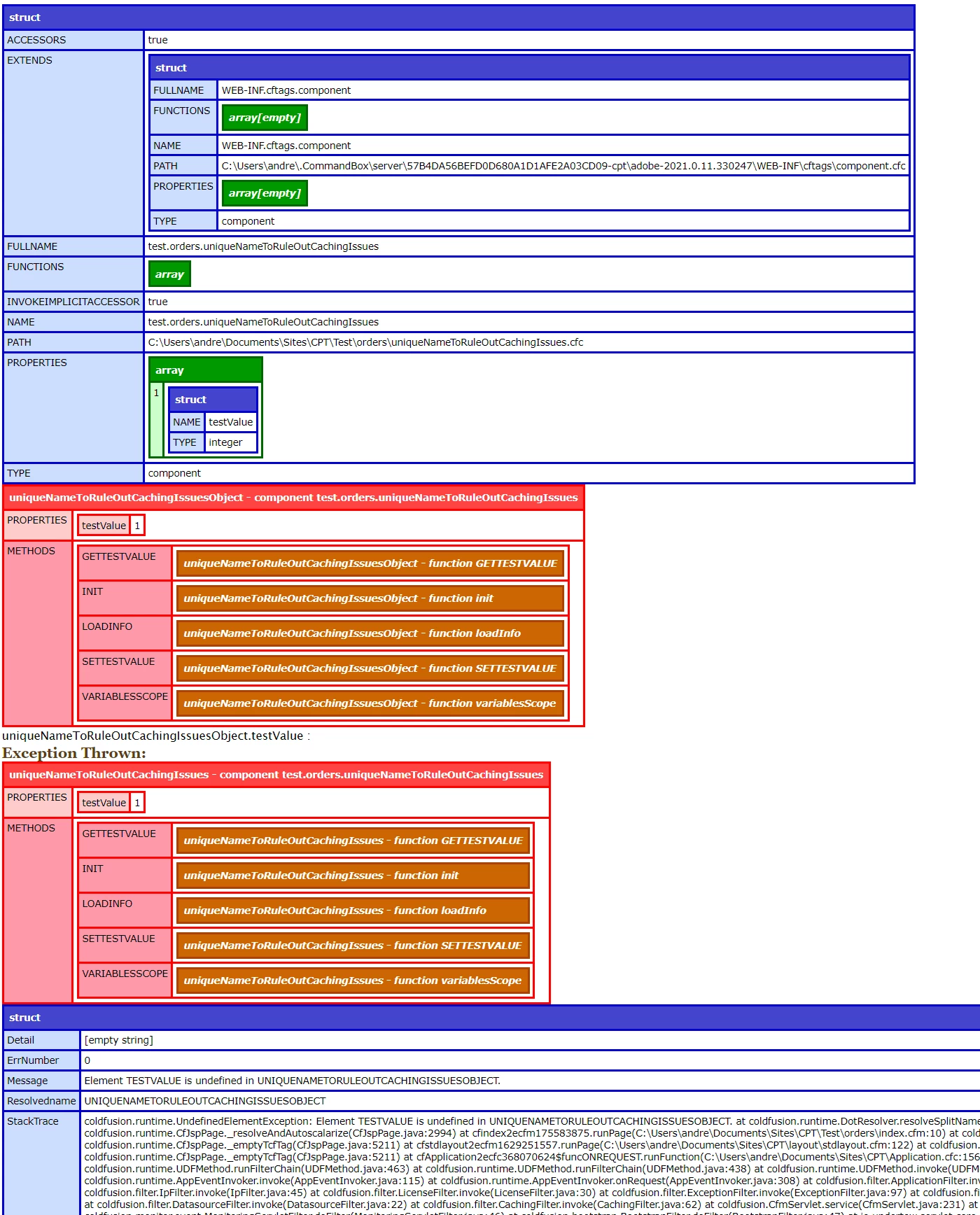 Does anyone have any idea why this is happening? Is there some ColdFusion settings we could tweak? The above example application is >very minimal, and we are not doing anything special, so I don't see any reasons why implicit accessors should fail, especially when >generated accessors seems to pass the same test without any issues.