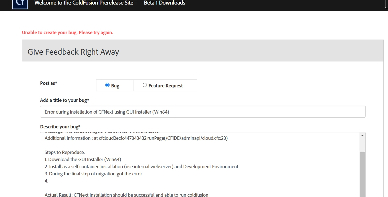 Join the Beta program and help shape the future of ColdFusion. We're counting on you!