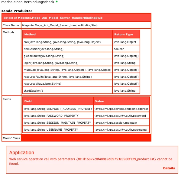 I have Problems with the API and coldfusion. I created a User in the Magento,add a role (full access). Via API, i can login ask for globalFaults,resources (List), end Session but i can't make a "call". The Errormessage is always "Web service operation call with parameters {f81d16872c0f408a9d09753c8900f129,product.list} cannot be found."