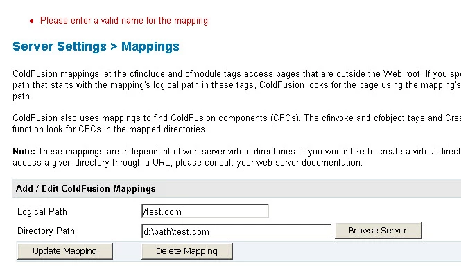 If I try to map "/test.com" to "d:\path\test.com" I get a "please enter a valid name for the mapping" error. We definitely had mappings with periods in our old Coldfusion stuff: