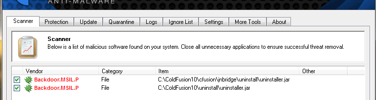 I was doing my maintenance on my laptop and it flagged 2 paths in my CF instal as virus'. Is this a false flag or did it really find something?