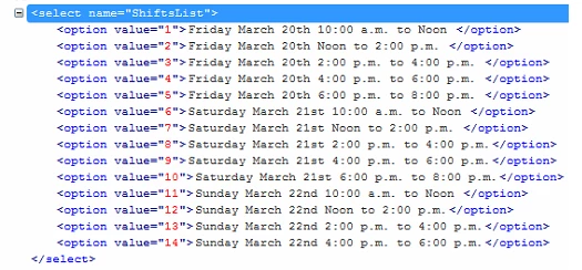 <td><select name="ShiftsList">