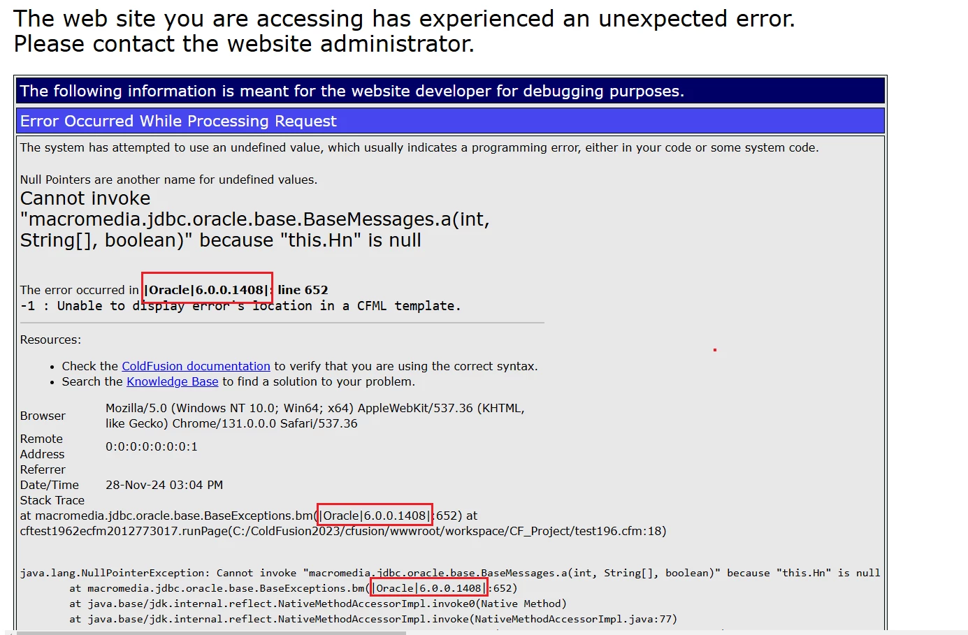 I was forced to upgrade from Coldfusion 2018 to Coldfusion 2021, update 16. For our database connection we are using the Oracle wallet to use ssl authentication. This was working fine in 2018. Now with the upgrade it stopped working. The error is this: