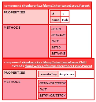 This issue started ever since I patched to CF 9.0.1 update and the latest hotfix. When I dump a CFC that inherits another CFC, the output does not show any inherited methods or properties. Are other folks seeing this same issue?