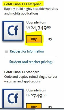 We have developed a web-based system that requires ColdFusion and I just need to give my client the price so that they can buy it from Adobe. Can you please publish this information? And please, don't pull the old 'depends what country what you are in' trick. We live in the digital distribution age (e.g. Creative Cloud), so we really don't need or want to pay for 'local' numpties. Thank you.