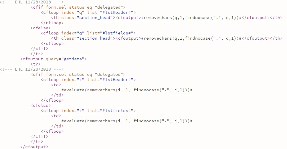 The problem is when I get to the point where I am outputting this to Excel from within the ColdFusion application. The code that does this is: