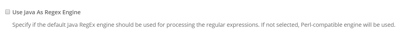If you enable this flag at the application level, you can override the default Regex engine and you can use the Java Regex engine.