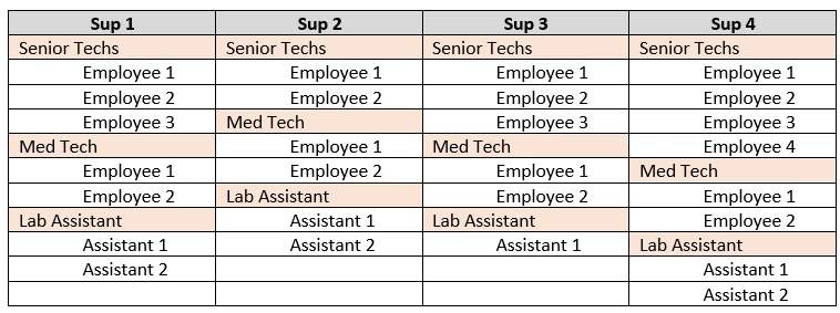 I want to display the Supervisors in a column with their staff, by group, under them. The number of Sups will vary over time. Today it's four, in a few months it will be three...