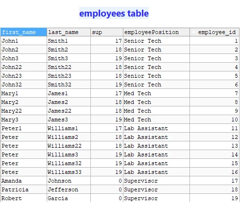 I have an employees table. In that table I have these columns that I am interested in working with: