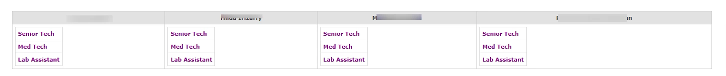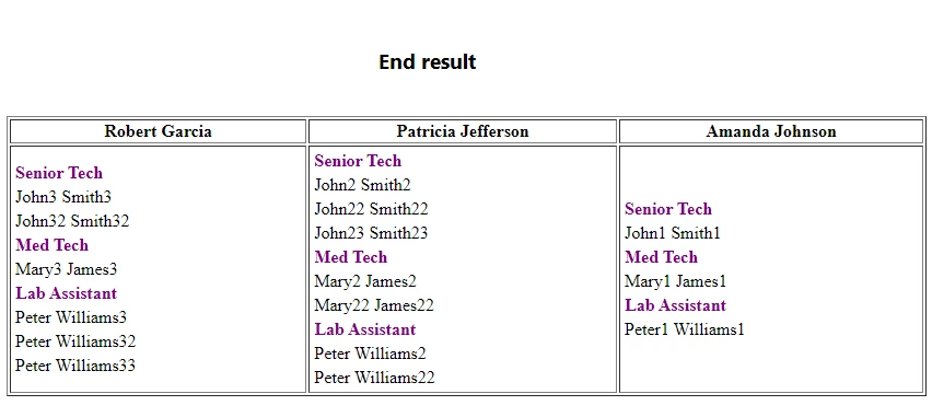 Reporting staff grouped by columns