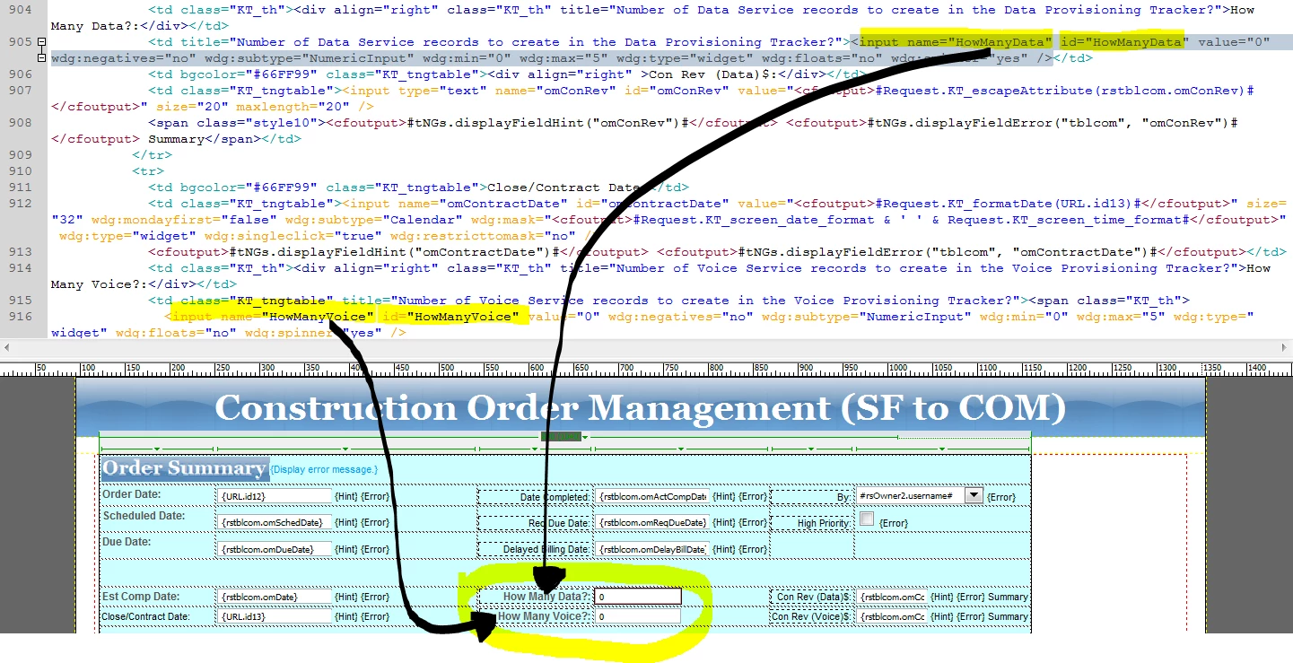 I added two new text type fields called: "HowManyData" & "HowManyVoice" (see image above) and a new field called "pvType"