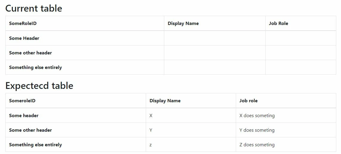 I want to display the result of this query in a table which is shown below, I can get to show the results with a loop or through explicitly calling the query as getNamesandRoles.displayName[1] and so on, but I can figure out how to loop thru the query in a way that would skip the first row where the ID (i.e. all the scope="row") and populate the data in the other two Td's dynamically so that it we have more users it creates those TD's related to the ID. Can i accomplish this ?