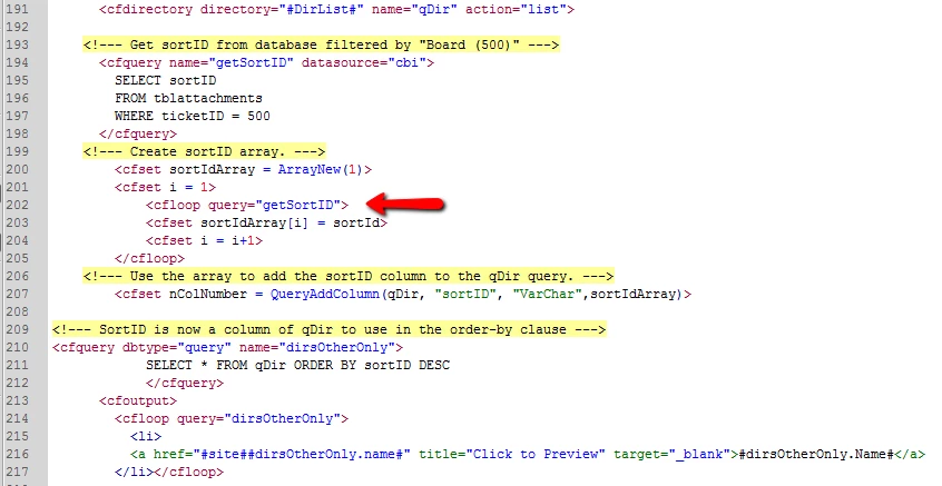 <cfdirectory directory="#DirList#" name="qDir" action="list" sort="sortID DESC">