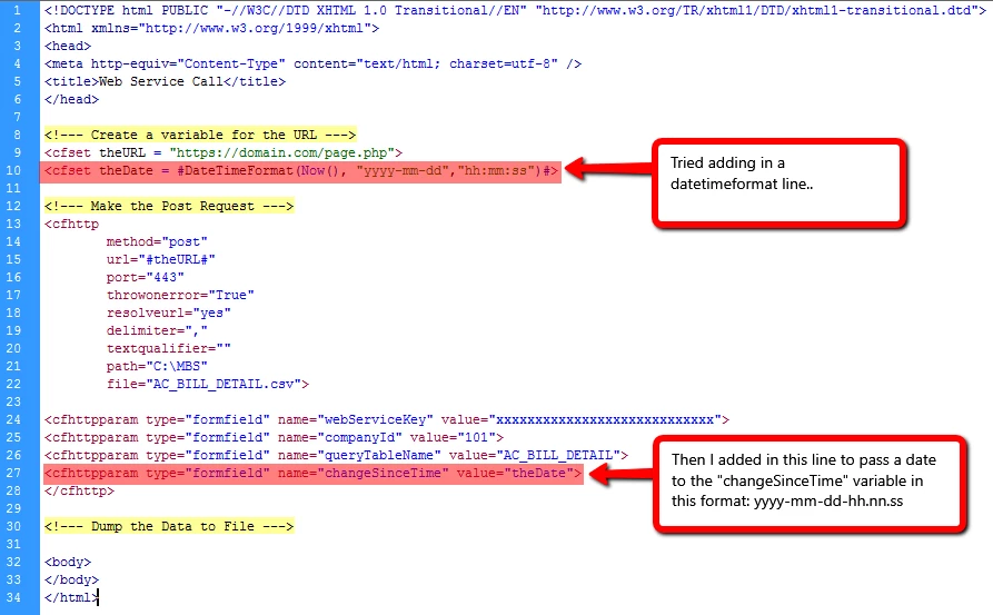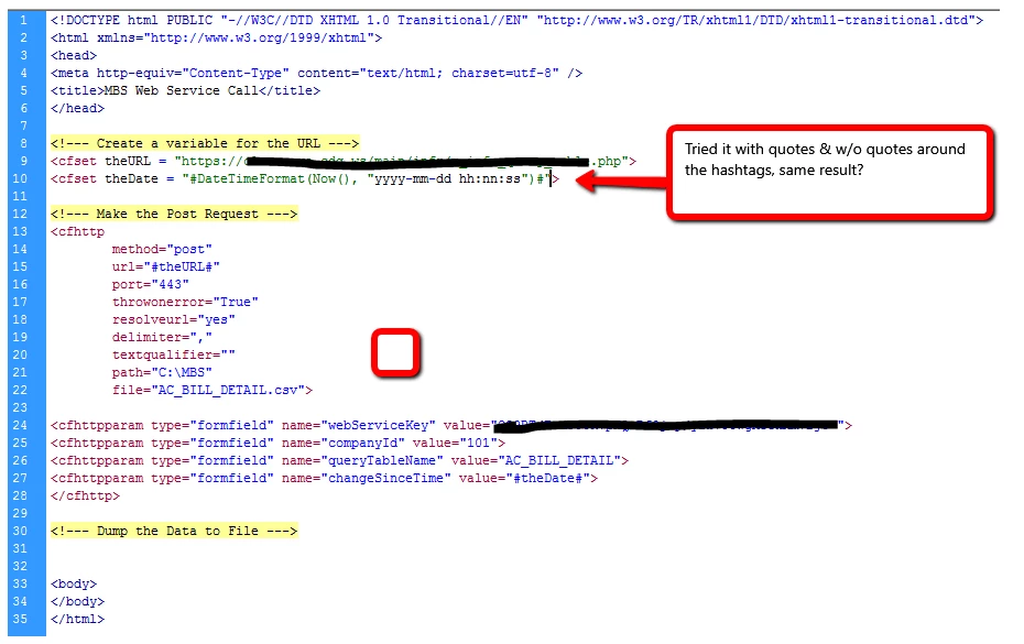 If I try: <cfset theDate = #DateFormat(DateAdd('d', -60, now()),'yyyy-mm-dd')#>