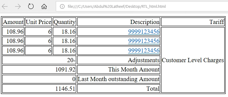 I have a table structure in HTML where I have to use rowspan and RTL(Right To Left) direction. But while converting this HTML to PDF rowspan is not working as expected. Assuming this is a bug in ColdFusion where an HTML with rowsapn and RTL direction is not working correctly.