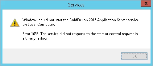 After a fresh CF2016 installation all CF services are running fine, but after I've updated the "Java and JVM" it's asking for restart the CF services, but when I do I'm getting the below error. Please help to let me know the fix for the below.