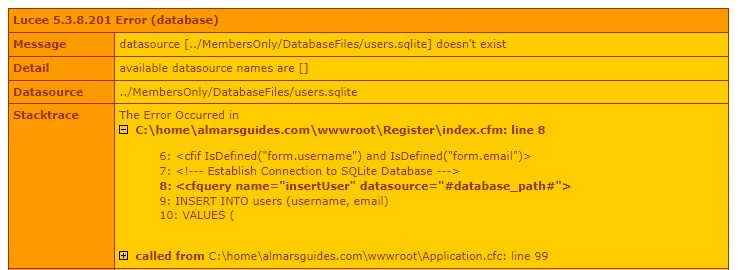 </div>The error I am getting is: datasource [../MembersOnly/DatabaseFiles/users.sqlite] doesn't exist