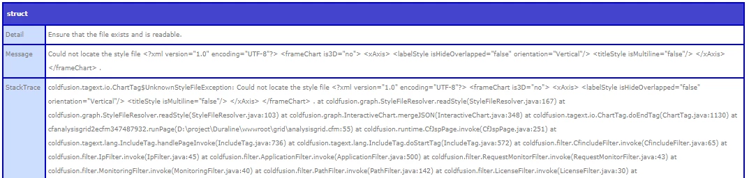 I am using cfchart for generating chart, but xml content for styling is not working on coldfusion 16 but it is worked in CF10.Error . Is there any way to fix this.