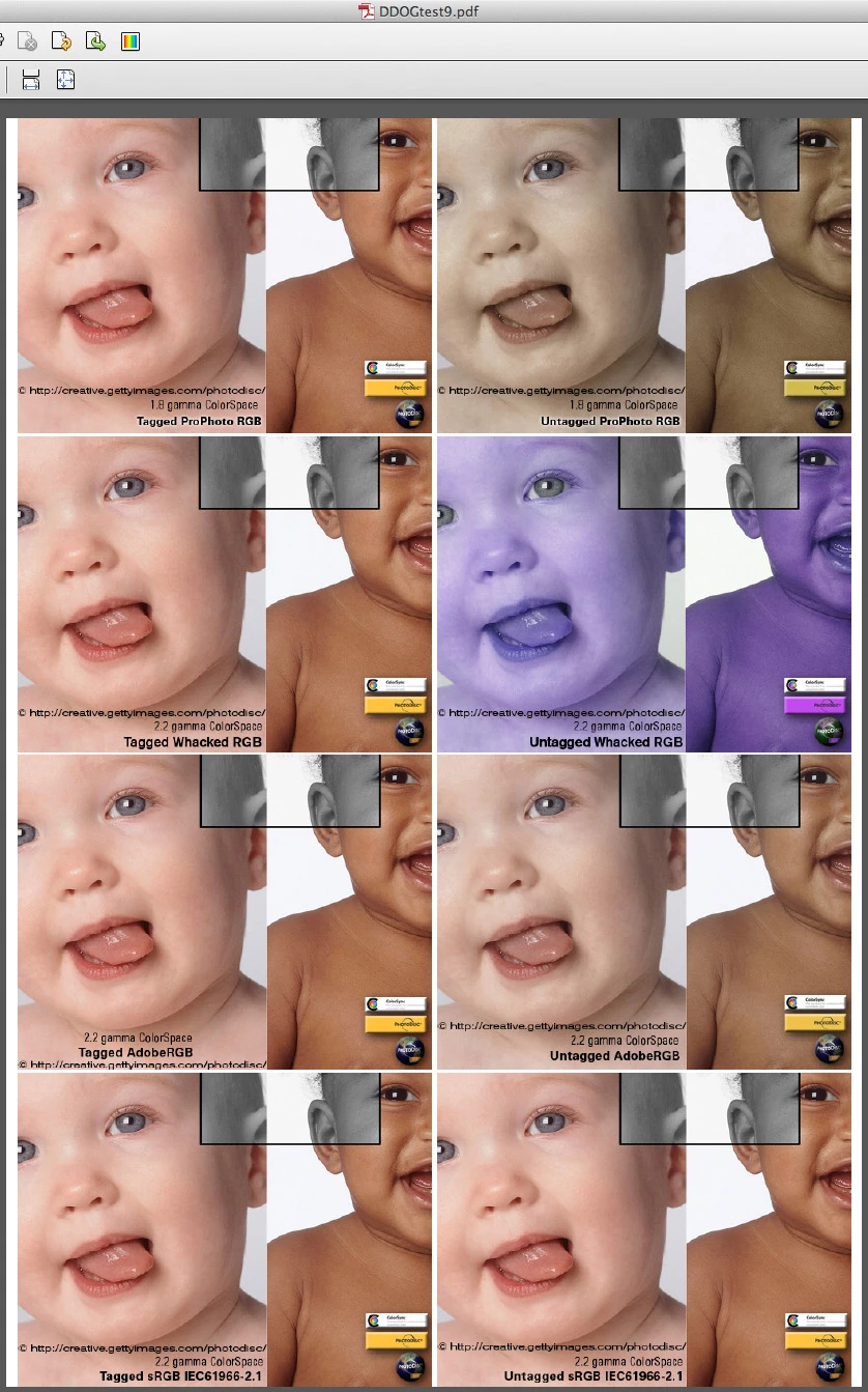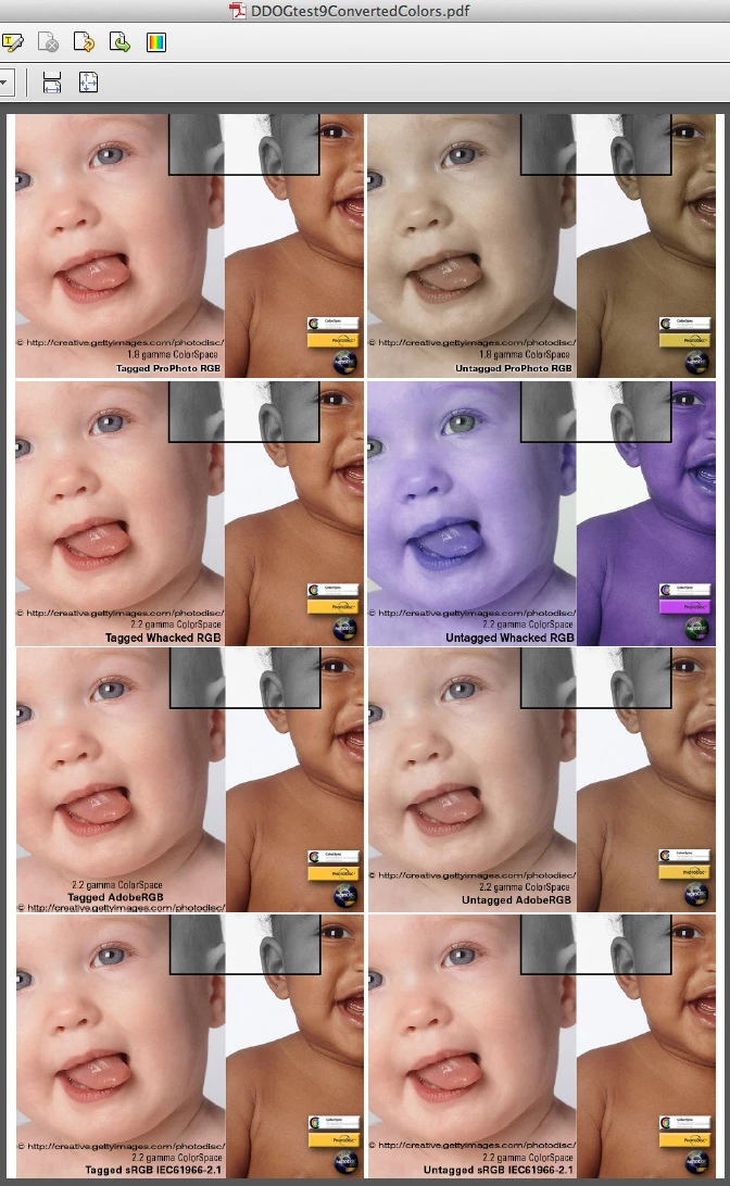 Andrew Rodney wrote: I am able to extract the actual images embedded into your PDF within Acrobat and open them in Photoshop (Edit with), then place them into a new doc ID CS6. I tested three tagged images (Wacked, sRGB and Adobe RGB (1998)). Each previews differently IN ID CS6 with Wacked looking magenta. |