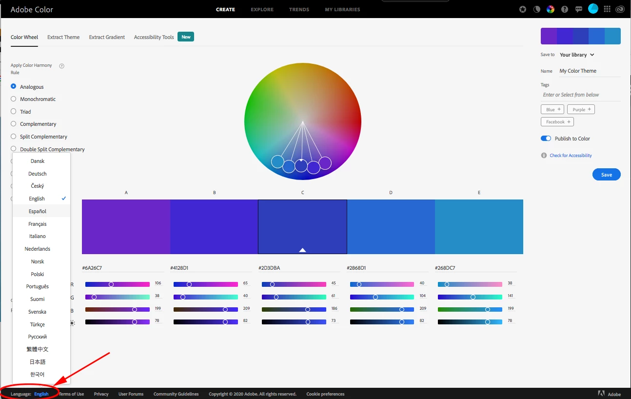 Help U was using web app Adobe Color and it appears all in russian, any ideas of how can I go back to spanish or english