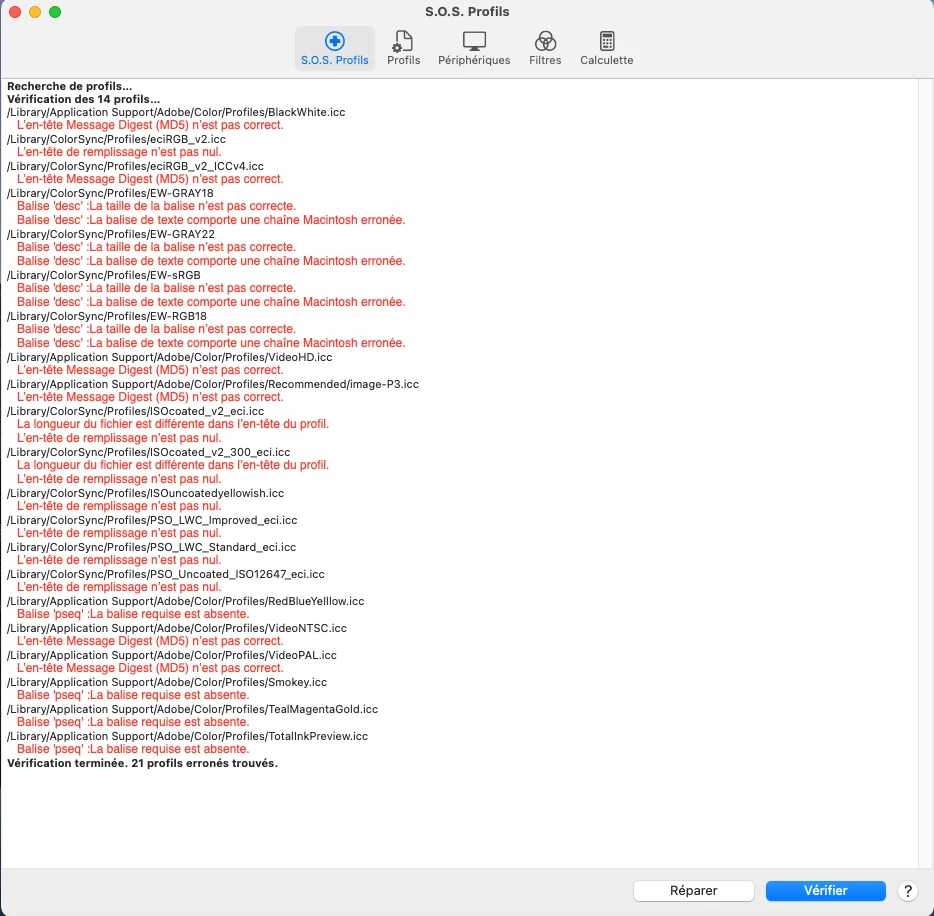 In the OSX Colorsync Utility / Profile First Aid I still have 54 errors