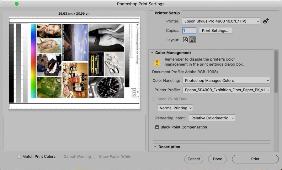 Colour Management between PSD, ID and Canon Desktop Printer