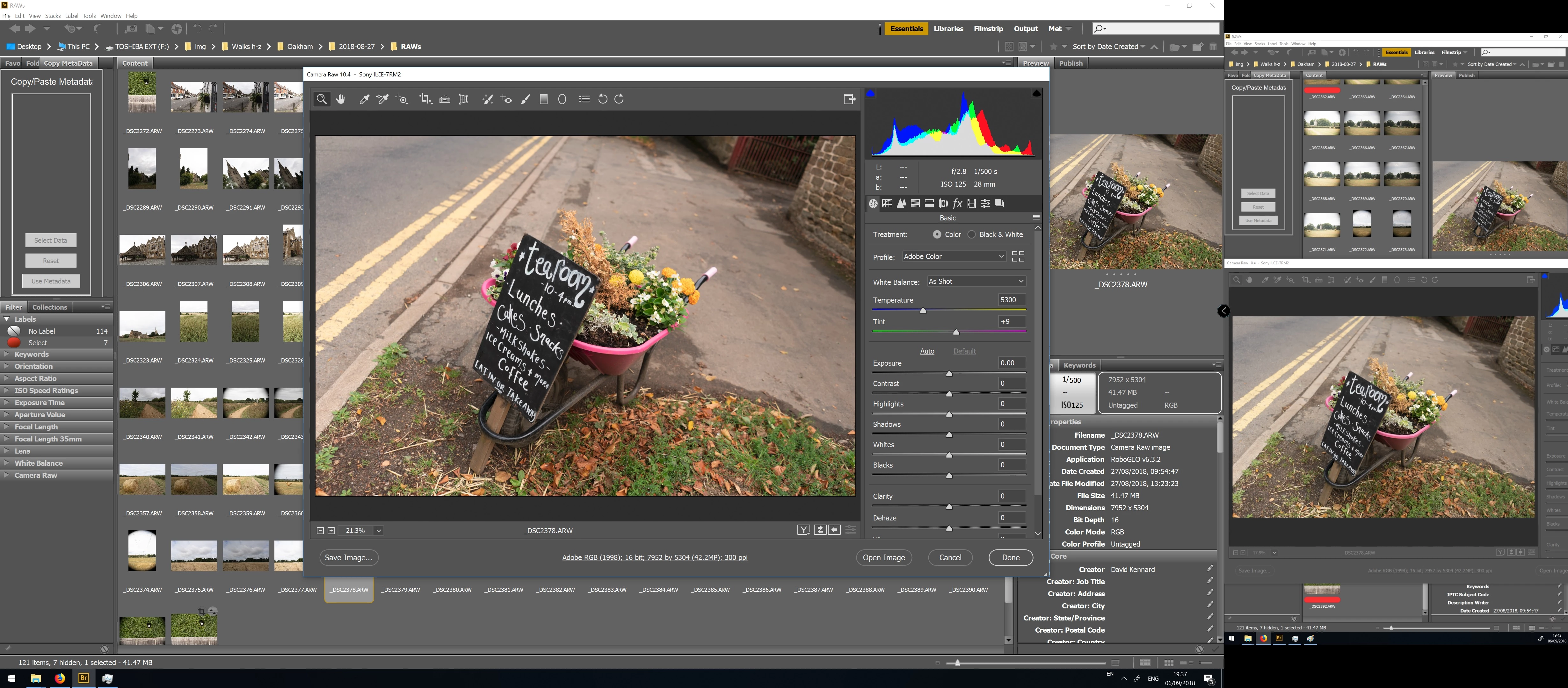 My question is slightly different from previous ones. Colours show the same in Bridge previews and Photoshop, but are much more vibrant in ACR. I have two monitors, the main one is a 10bit wide(ish) gamut, the other a standard sRGB. I only see the strong colours in ACR on the main monitor, on the sRGB one ACR, Bridge and PS all display the same. Both screens have been calibrated with an i1 Pro.