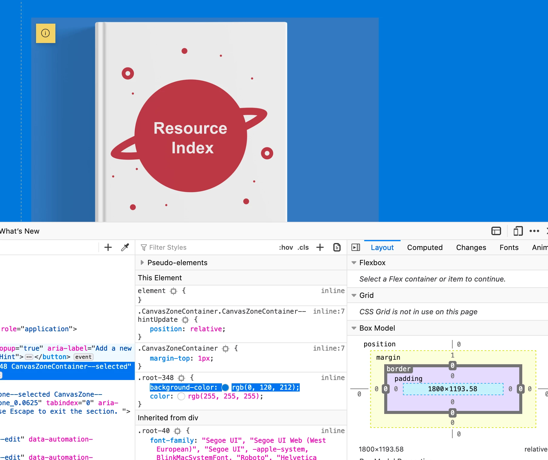 I’m using Photoshop 21.1.3, on an iMac (‘iMac’ default colour display). I create the book image with a blue background of R:0 / G:120 / B:212 – to match that of the website (as highlighted in screenshot). The Photoshop Colour Profile is sRGB IEC61966 and I export as PNG sRGB.